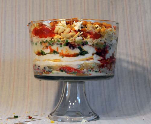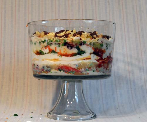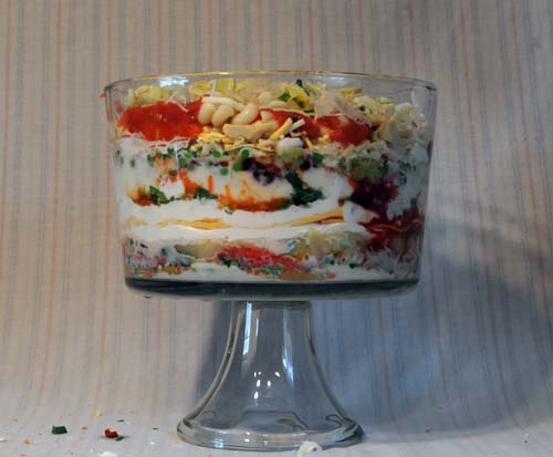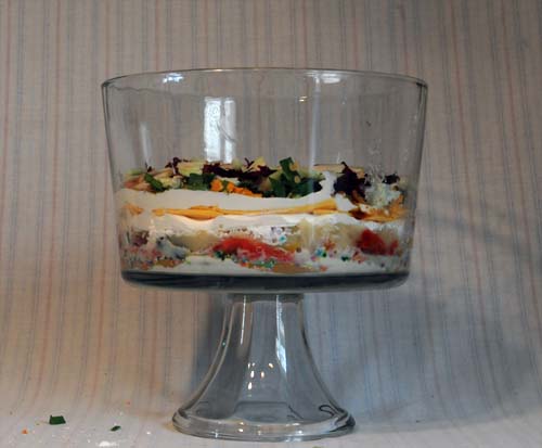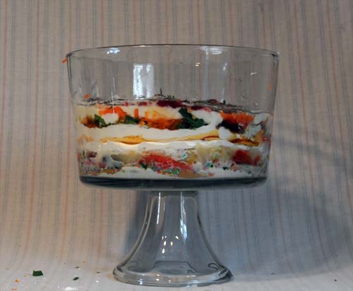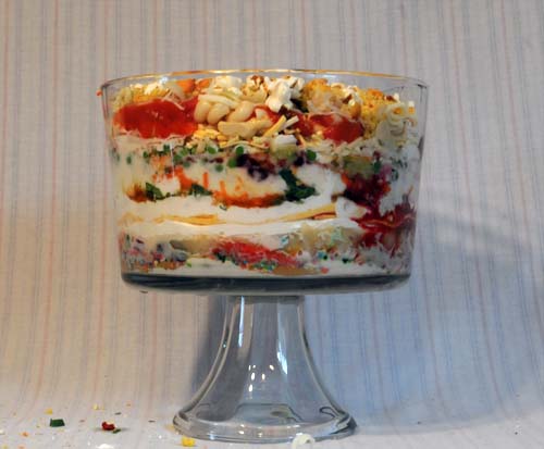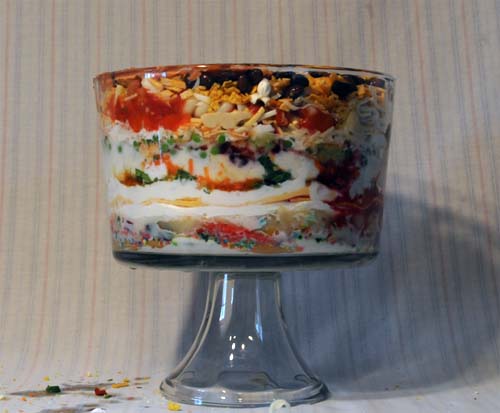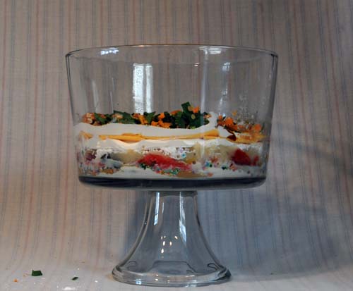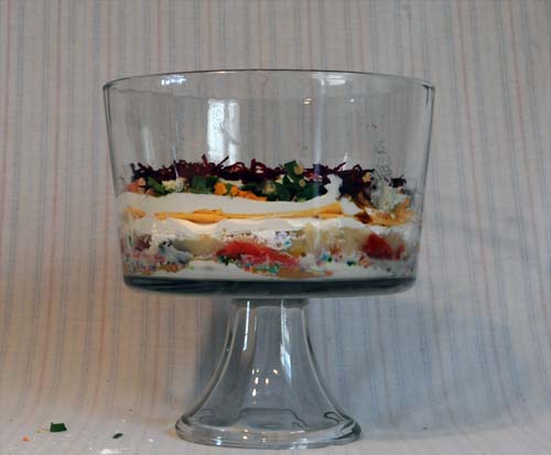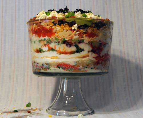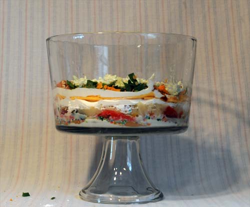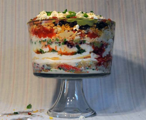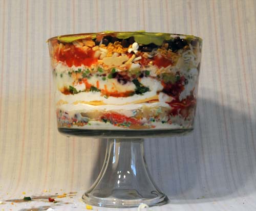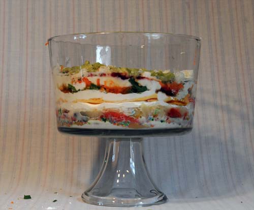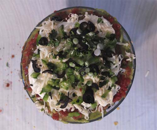 On April 28th, 2012, I assembled a 100 layer dip. I had been brainstorming the layers for over a year using this personal blog, initially inspired by the wonderful '7 layer dip'. The dip was served at 2PM and mostly consumed by 5PM by party goers who brought their own chips, pita and baguette. In the spirit of the internet, I have made this table of photos and accompanying animated gifs that require patience to load.